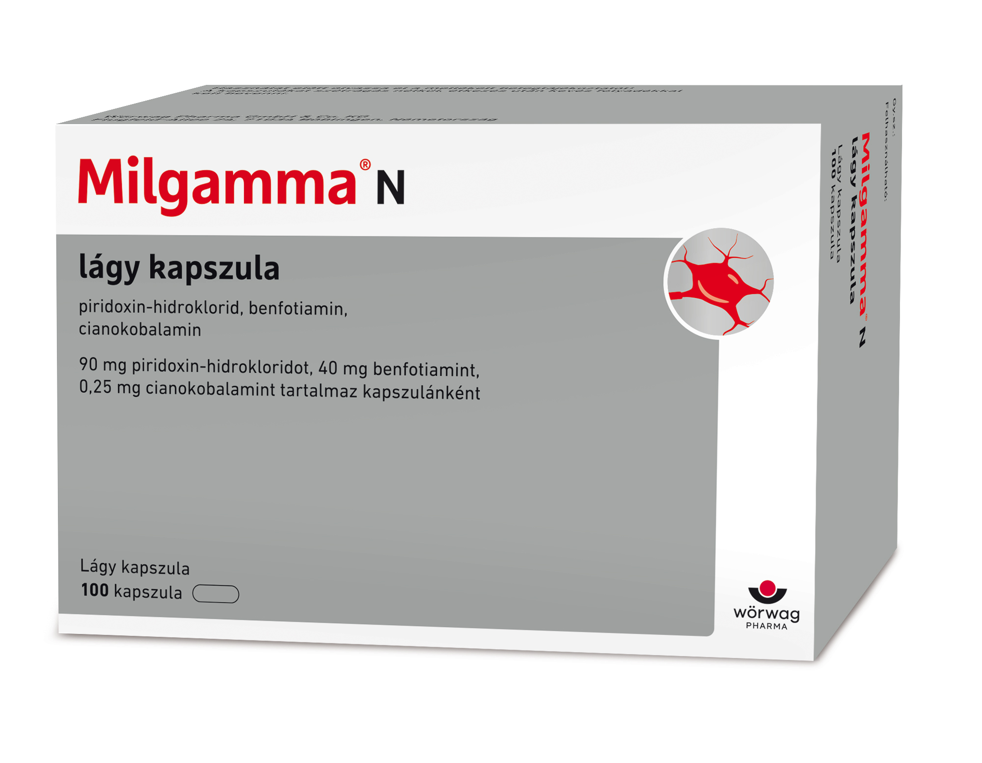 40 mg benfotiamin, 90 mg piridoxin- hidroklorid és 0,25 mg cianokobalamin kapszulánként.